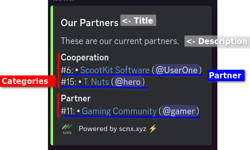 - Create an always up-to-date embed listing all your current partners.