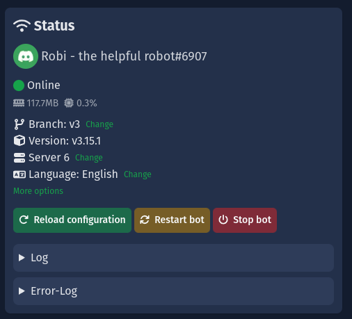 - Next, click on "More options" in the Bot-Status-Panel.